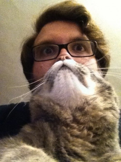 Берёте своего любимого питомца, сажаете себе на колени, поднимаете его мордаху к своему подбородку и Котоборода готова! Результат должен быть похож на эти фотографии: