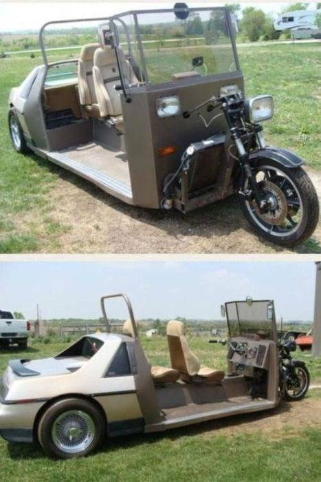 чудо-транспорт спереди -мотоцикл, сзади -автомобиль)))