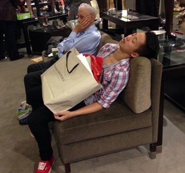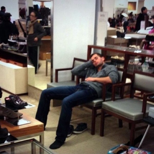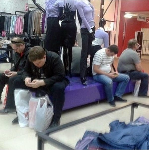 Потом этот злосчастный шопинг будет сниться мужчинам в кошмарных снах. Вы только посмотрите на этих бедолаг, посмотрите как они страдают!
