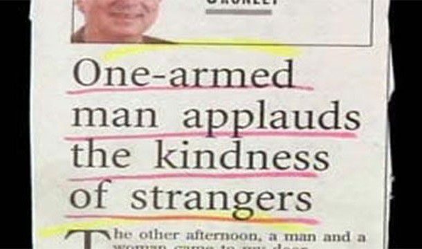 Однорукий мужчина аплодирует доброте незнакомцев