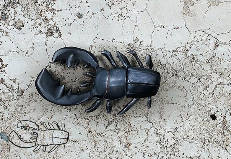Голландский монументалист Тельмо Пьепер нашел собственные рисунки, сделанные им в четырехлетнем возрасте, и решил воссоздать нарисованные объекты при помощи фотошопа. Причем сделать их как можно более реалистичными. С задачей художник справился на пять.