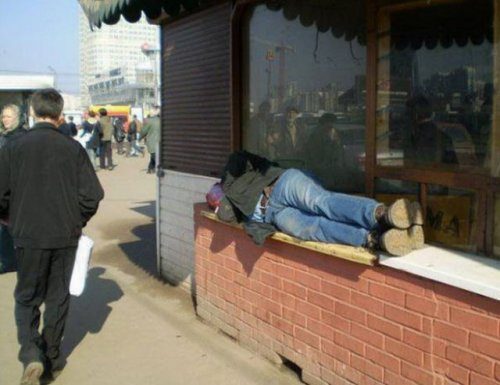 Идет процесс деградации общества. Пьяные по — всюду и общество к ним привыкает.