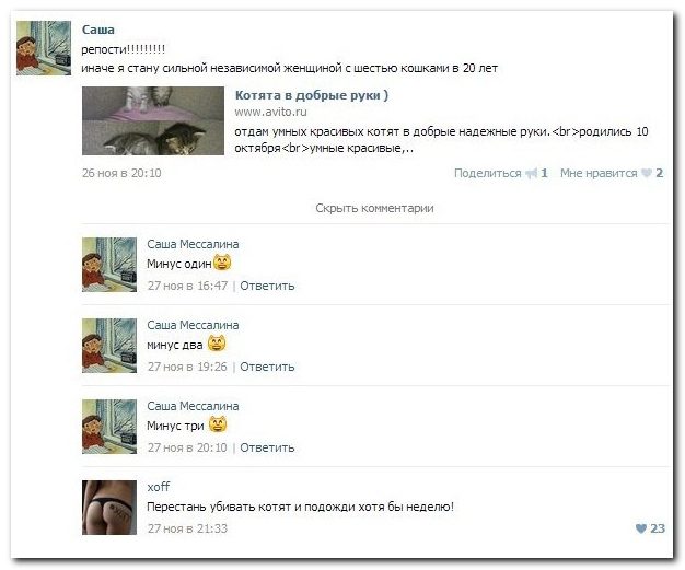«Перестань убивать котят...» :))))