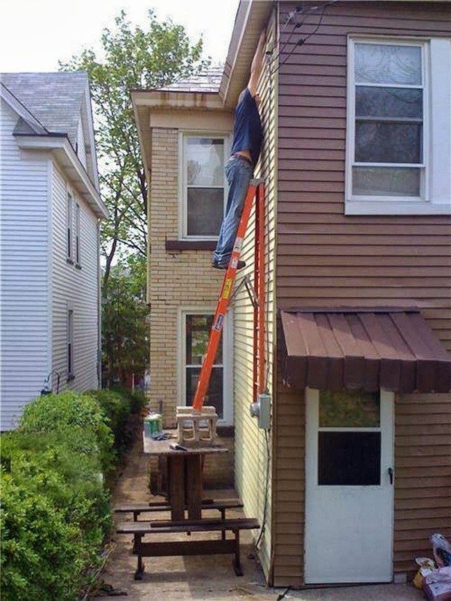 А как еще? Хорошо еще, что лестницы хватило.