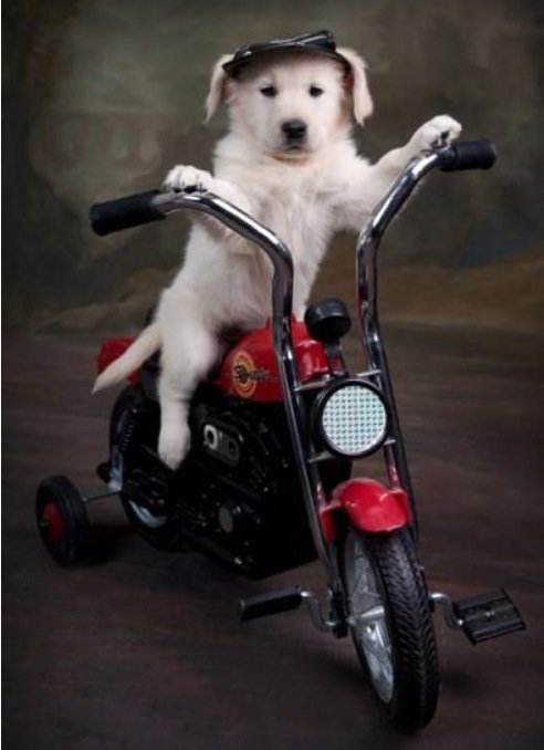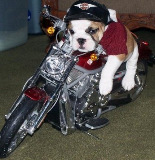 Домашние питомцы любят повторять за своими хозяевами и приобретают привычки своих владельцев. Поэтому нетрудно догадаться, кто является хозяевами этих собакобайкеров…