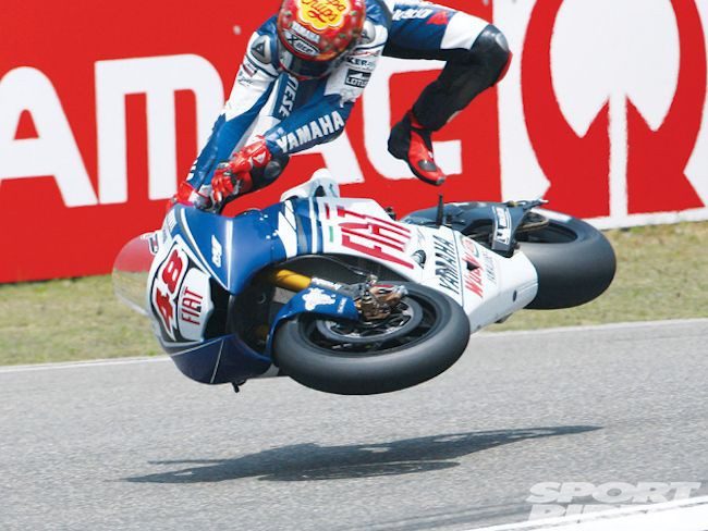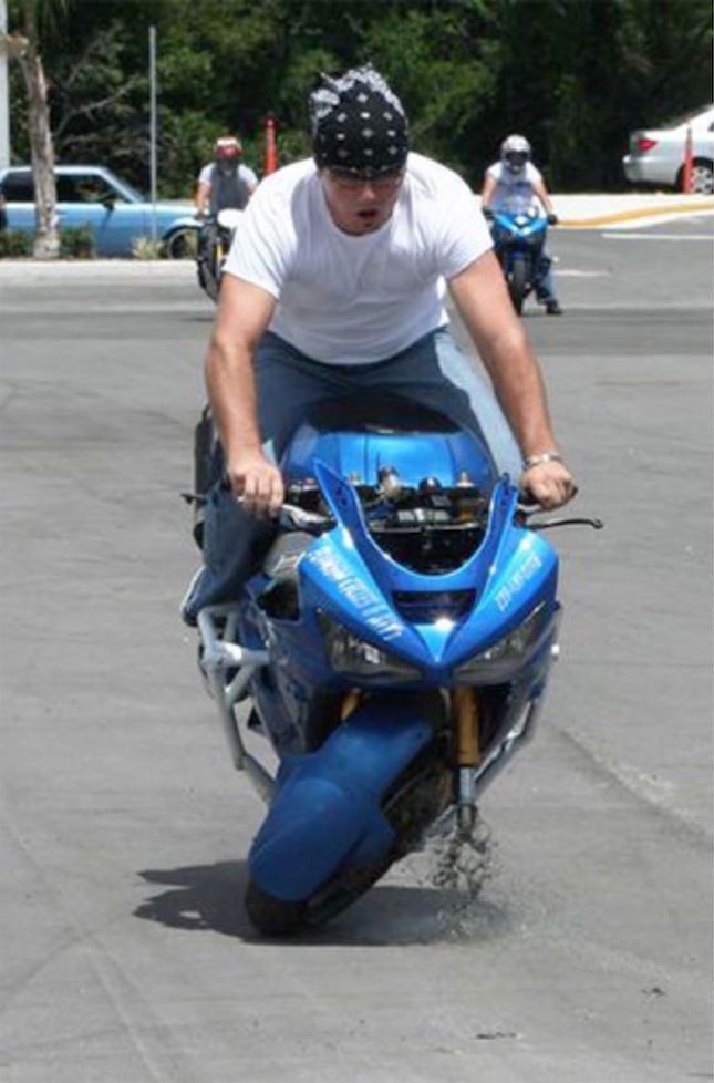 Главное, чтобы во время падения с носом водителя не получилось точно также, как с колесом его мотоцикла