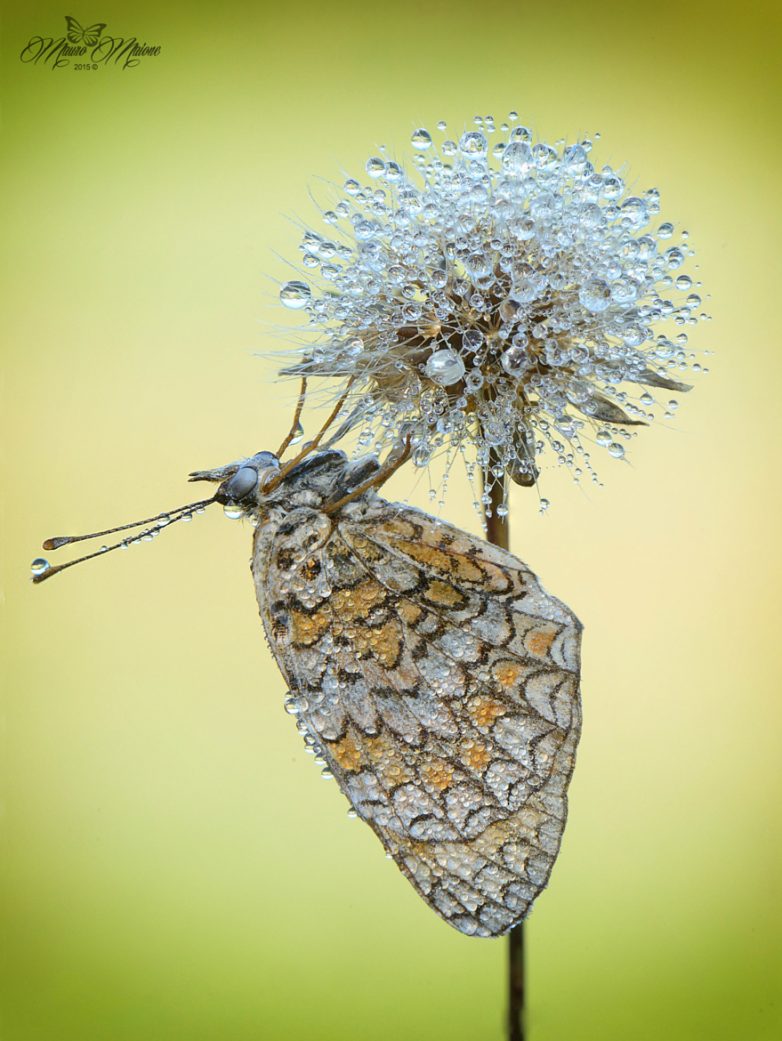 Бабочка на одуванчике и все в росе — замечательное фото! :)