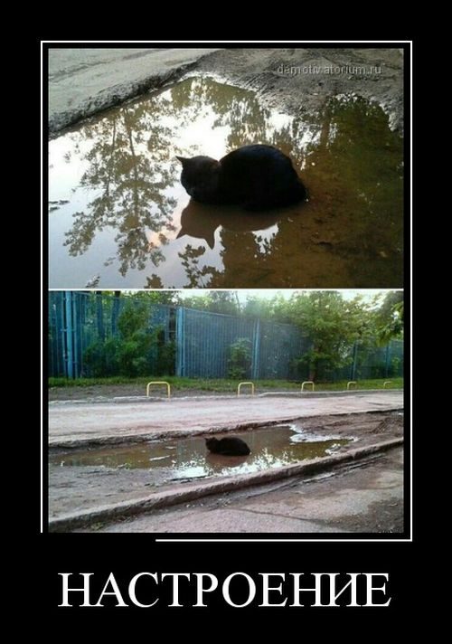 Не может кот сидеть в луже. Болеет однако. Поэтому-не смешно.