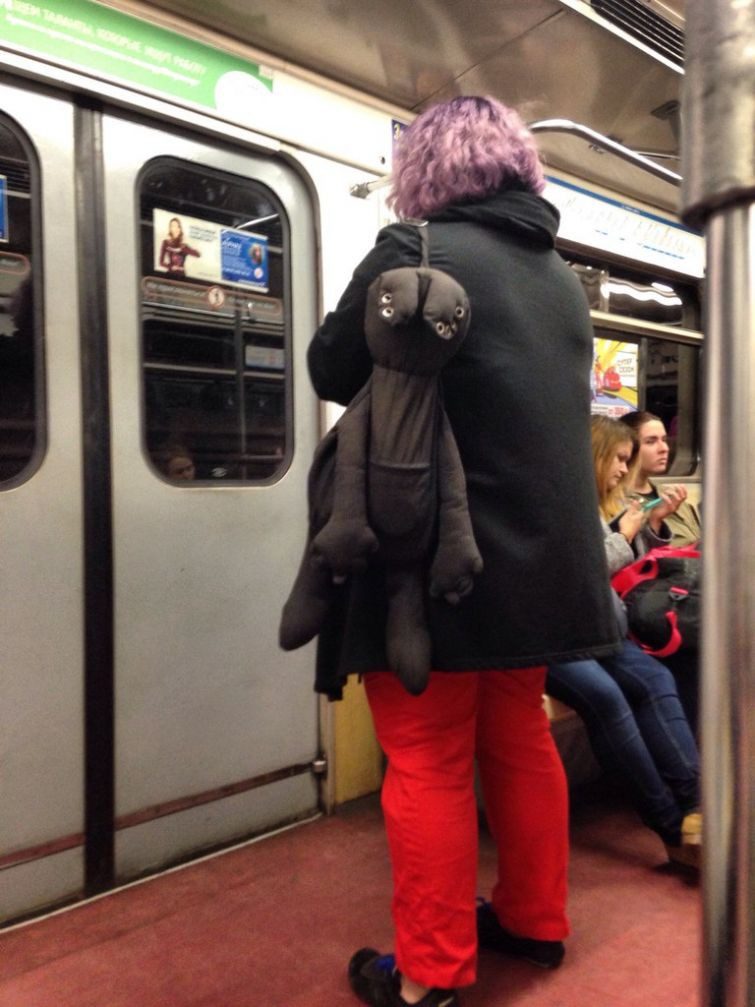 Похоже, некоторые из пассажиров не ощущают того, что вокруг них есть другие люди, да и то, что в принципе странно ездить в метро в образе черепашки-ниндзя, которая к тому же является путешественником, носить комбинезон больше похожий на пижаму или ездить в метро надев на голову шапку лося, а на ноги шотландский килт, вообразив себя при этом не понятно кем