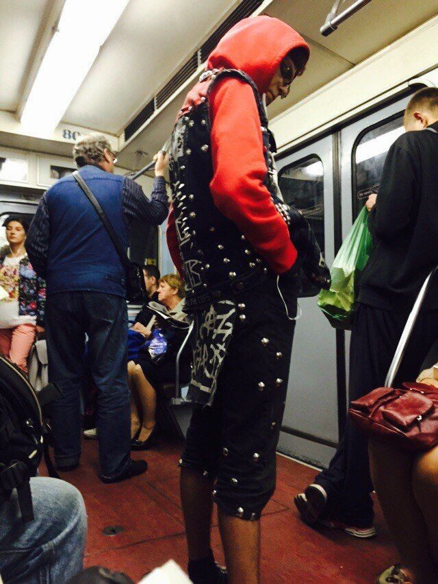 А никто не подумал, что ряженные в метро могут ехать на какой нибудь фестиваль или происходящие в основном в Москве так называемые коны, например Comixcon, Vidfest? Там много фриков собирается. А человек с татухами и ярким ирокезом диджей.