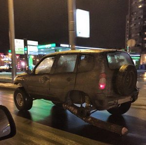 Петербуржец Эдуард Алимов проехал 120 км до своего гаража на своем Chevrolet Niva, у которого вместо одного из задних колес было прикреплено бревно. Фото автомобиля разместили в Интернете очевидцы, и оно уже успело стать популярным. Как рассказал Life78 сам водитель, на эксперимент его толкнула нужда.