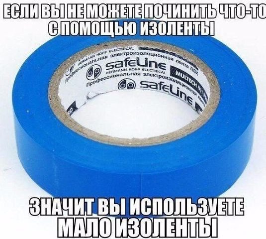 Интересно, сколько понадобится изоленты предпоследнему оченно умному автору, чтобы починить, например, разбитые мечты?.. или разорванные отношения?? или сломанный последний апрельский лёд на луже??? я понимаю, что много — но хотелось бы хоть какой-то конкретики…