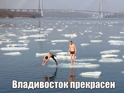 У первой фото подпись такая: «Смотрите, братцы, лом плывёт!»
