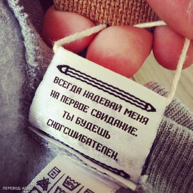 Мало кто обращает особое внимание на то, что обычно пишут на ярлыках одежды. Поэтому решил поделиться самыми оригинальными надписями, которые доказывают, что у производителей тоже есть чувство юмора.