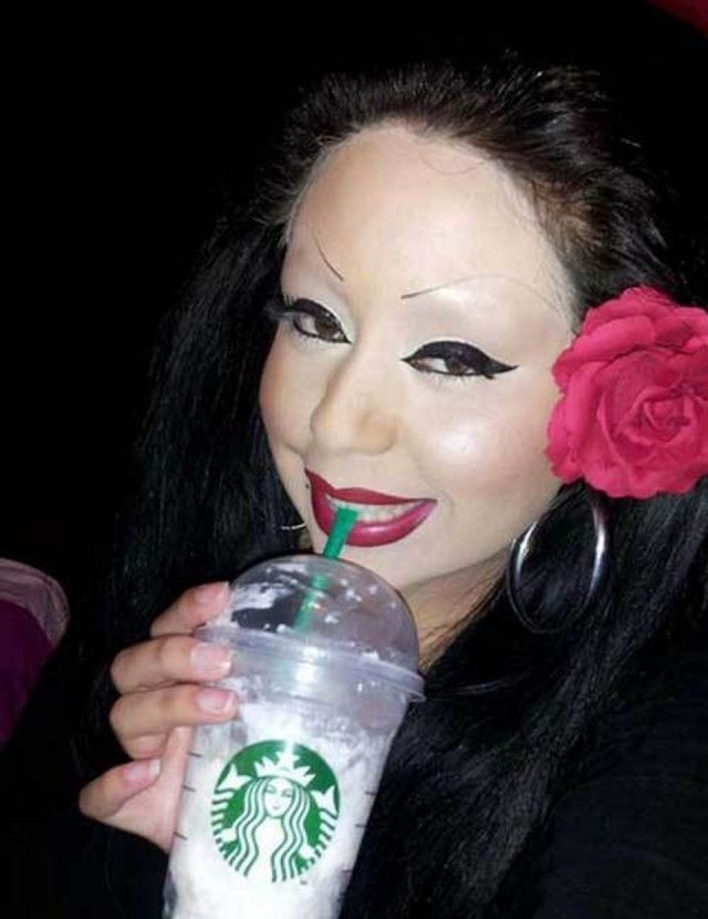 Да это приколы такие! Не может нормальная женщина так себя уродовать в повседневной жизни! Только если на какой-нибудь хэллоуин!