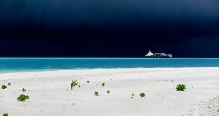 Грозовой фронт надвигается на остров Мааенбудху в Лаккадивском море, Мальдивская Республика.