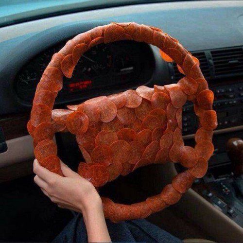Руль, облепленный то ли кусками колбасы, то ли чипсами — не позитив, а мерзость… ладно, руки потом не отмоешь — но ведь и салон машины не отчистишь!..