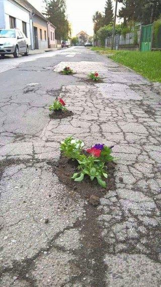 Петунии сами не вырастают, тем более в трещинах асфальта.