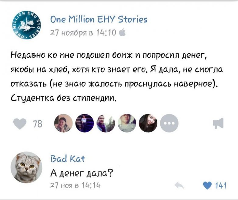 Меня тоже очень заинтересовало, а денюжку студентка бомжу дала?
