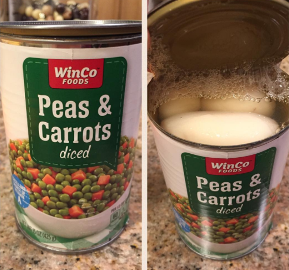 «Горошек и морковь кусочками» — гласит надпись на банке. Интересно, вот это, белое, продолговатое, похожее на яйца — это генно-модифицированный горох или каким-то невероятным образом яйца?