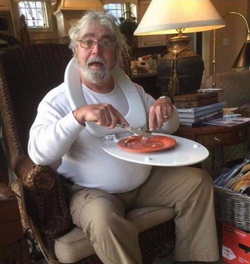 Используйте сиденье унитаза в качестве навесного подноса, куда можно поставить тарелку во время просмотра телевизора.