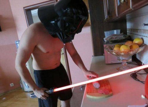 Главное при нарезке колбасы мечом джедая не повредить стол!
