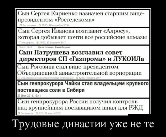 Трудовые династии уже не те — это понятно… не понятно только — кто из перечисленных в списке относится к «трудовым»???