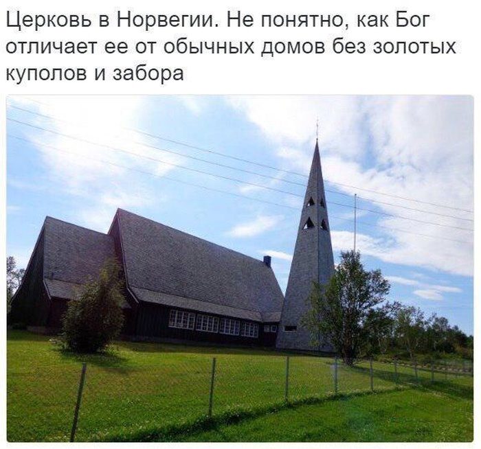 Странно, как же Бог находит церковь в Норвегии без золотых куполов?!