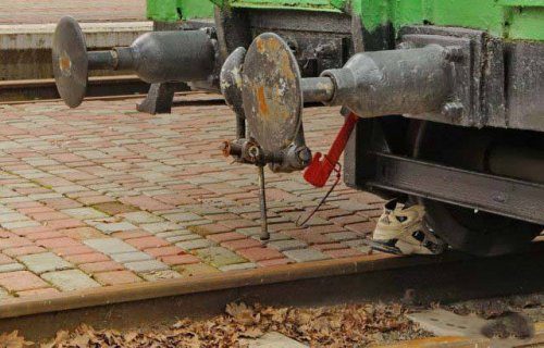 Кросовок под вагоном вместо башмака, интересно, удержит?