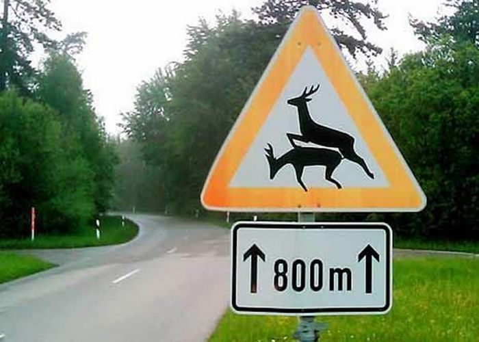 Непонятный знак из Германии. Понять из него можно разве то, что у местных оленей есть привычка спариваться именно на дороге.