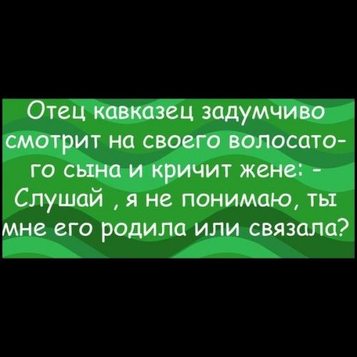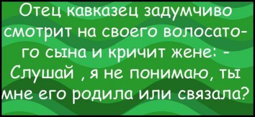 — Абэжаешь дарагой, кур топчэт, авэц топчет, каров топчет, а вчэра, слушай, на мэня так посматрэл!