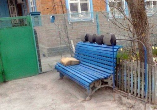 Посмеялся от души, ай-да умельцы наши!!!))) А доминошникам передвижной стол — это супер! А спутниковая антенна и дверь с ручками — это только русские умеют...!)))
