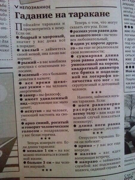 А если нет тараканов, на чём гадать? Этак я останусь без информации?
