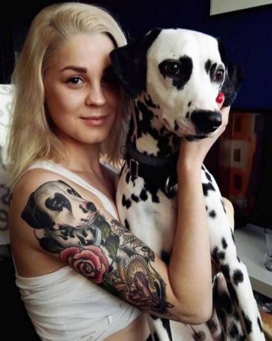 А девонька-то себе не ту собаку на плечо набила…