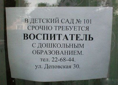 С детским садом что не так? Ничего смешного. В детские сады берут на работу педагогов не только ДОШКОЛЬНОГО, но и ШКОЛЬНОГО образования!