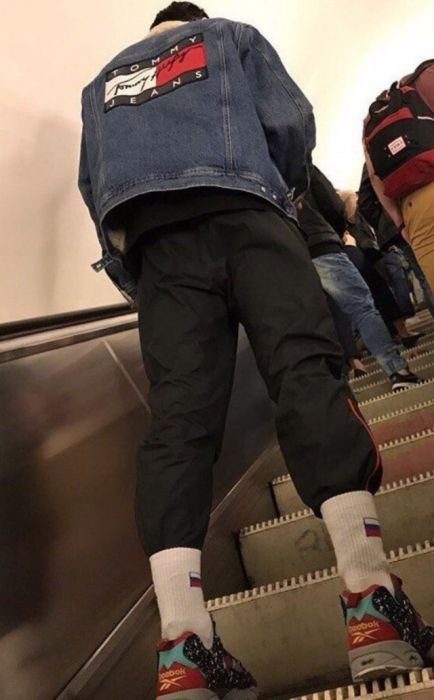 Нормальные люди вызывающие улыбку и хорошее настроение. Уж явно лучше гопников в трикошках с вытянутыми коленками.
