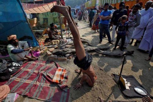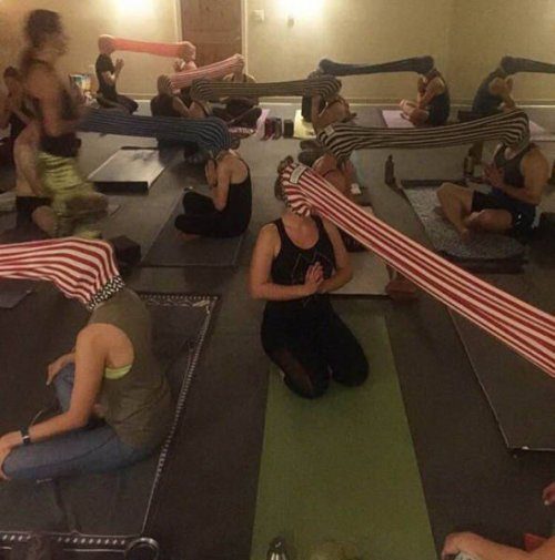 На первом фото йога-конкурс: Кто в кого доплюнет.