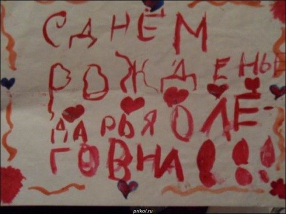 Ребёнок старался рисовал открытку любимой учительнице… Видно, не случайно у неё такое отчество…