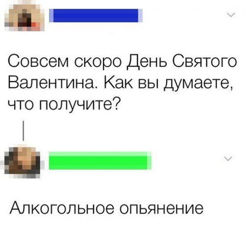 (Торжественно) В честь Дня святого Валентина! С наступающим легким алкогольным опьянением, товарищи!!!