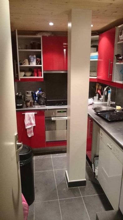 У некоторых посреди кухни остров, а здесь столб, места моловато.