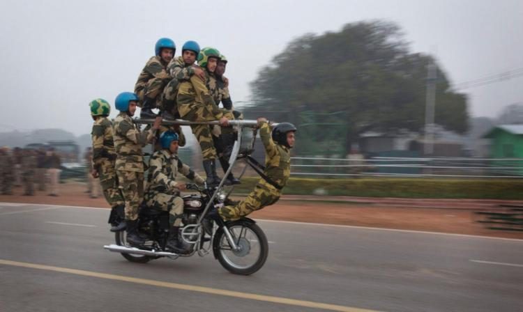 Безбашенные индусы все же с башней, раз шлемы одели!..
