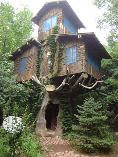 Теремок на стволе дерева.
