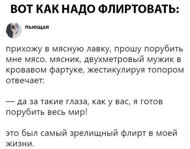 Прикольно, а зрелищный флирт оригинален и с селфи молодец мужик, не выдержал ужасного своего изображения.