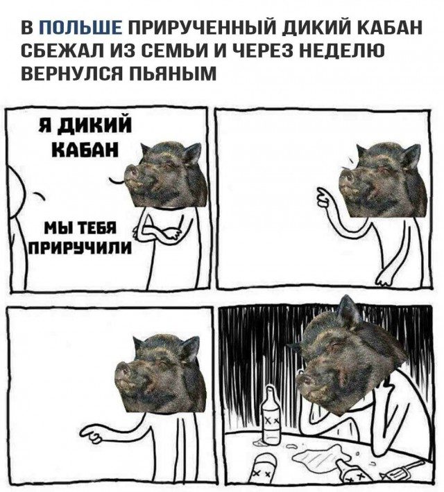 Бухой дикий кабан вернулся к людям, видимо, на автопилоте.