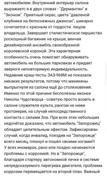 Одно мы можем сказать точно, внимание они однозначно к себе привлекут, но это не означает, что быстрее смогут продать товар. Давайте посмотрим на объявление одного автолюбителя, который решил продать автомобиль ЗАЗ 968.