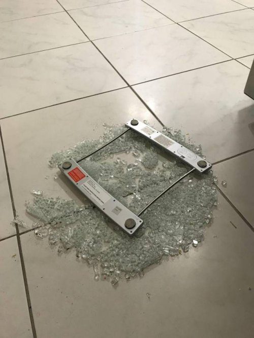 Это ж с каким весом надо было встать на весы чтоб они треснули?