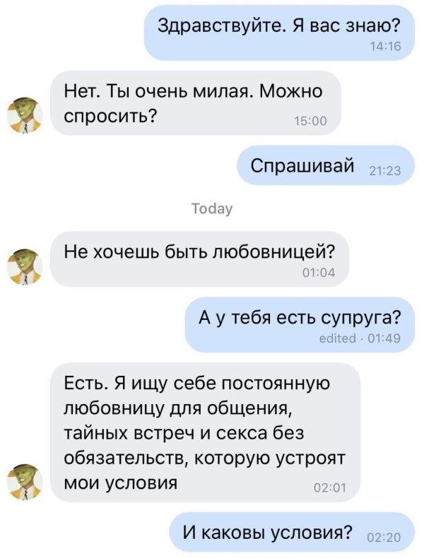 Забавная переписка мужчины, который решил во что бы то ни стало найти для себя достойную любовницу. Список его условий оказался действительно немаленький, но и ответ он получил весьма забавный.