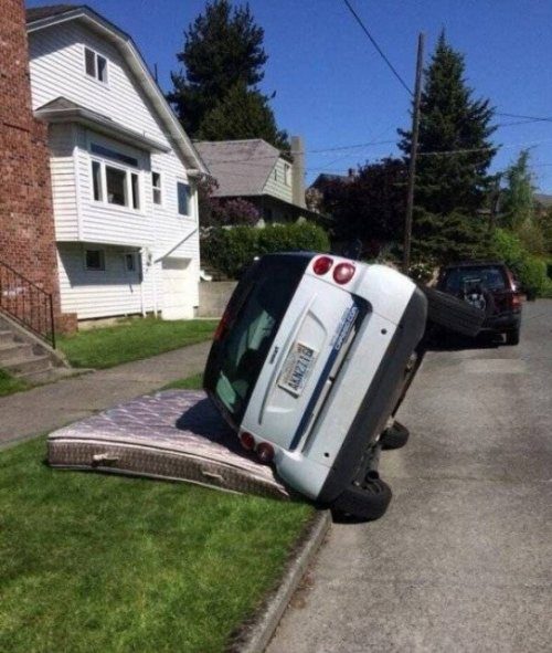На первом фото машинка просто устала и прилегла на матрас. Ничего необычного:)))
