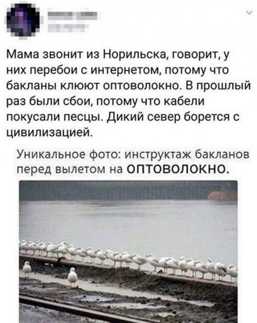 Про бакланов правда, и ещё было не так давно, что это несчастное оптоволокно олени рогами зацепили и потом белки погрызли немножко))))