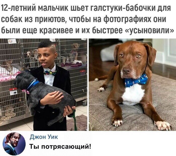 НО ПЕРВОЕ МЕСТО МАЛЬЧИКУ, КОТОРЫЙ ШЬЁТ ГАЛСТУКИ-БАБОЧКИ ДЛЯ СОБАК ИЗ ПРИЮТОВ!!! ✌